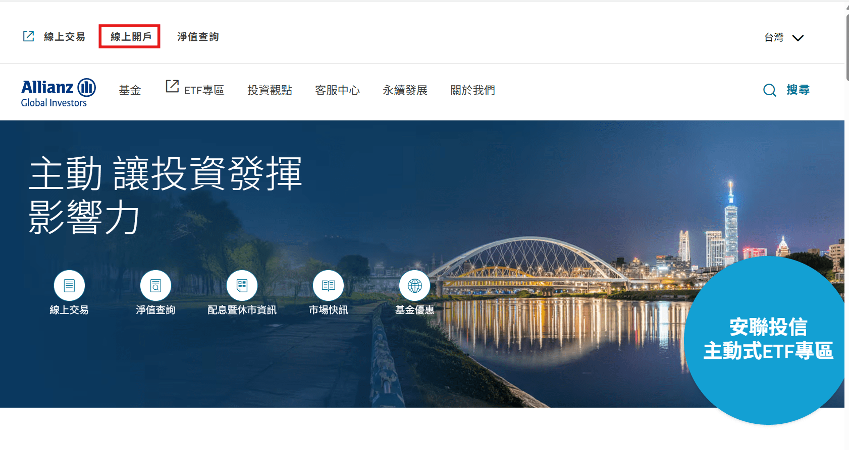 2. 登入官網首頁,點選導覽列上方的「線上開戶」,進入線上開戶頁面。