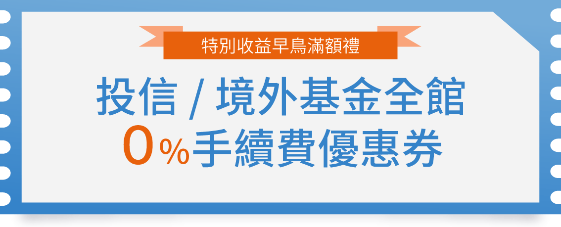於募集早鳥期間(7/13~14)單筆申購滿額贈【投信/境外基金0%手續費優惠券】達新台幣30萬贈1張;達50萬贈2張