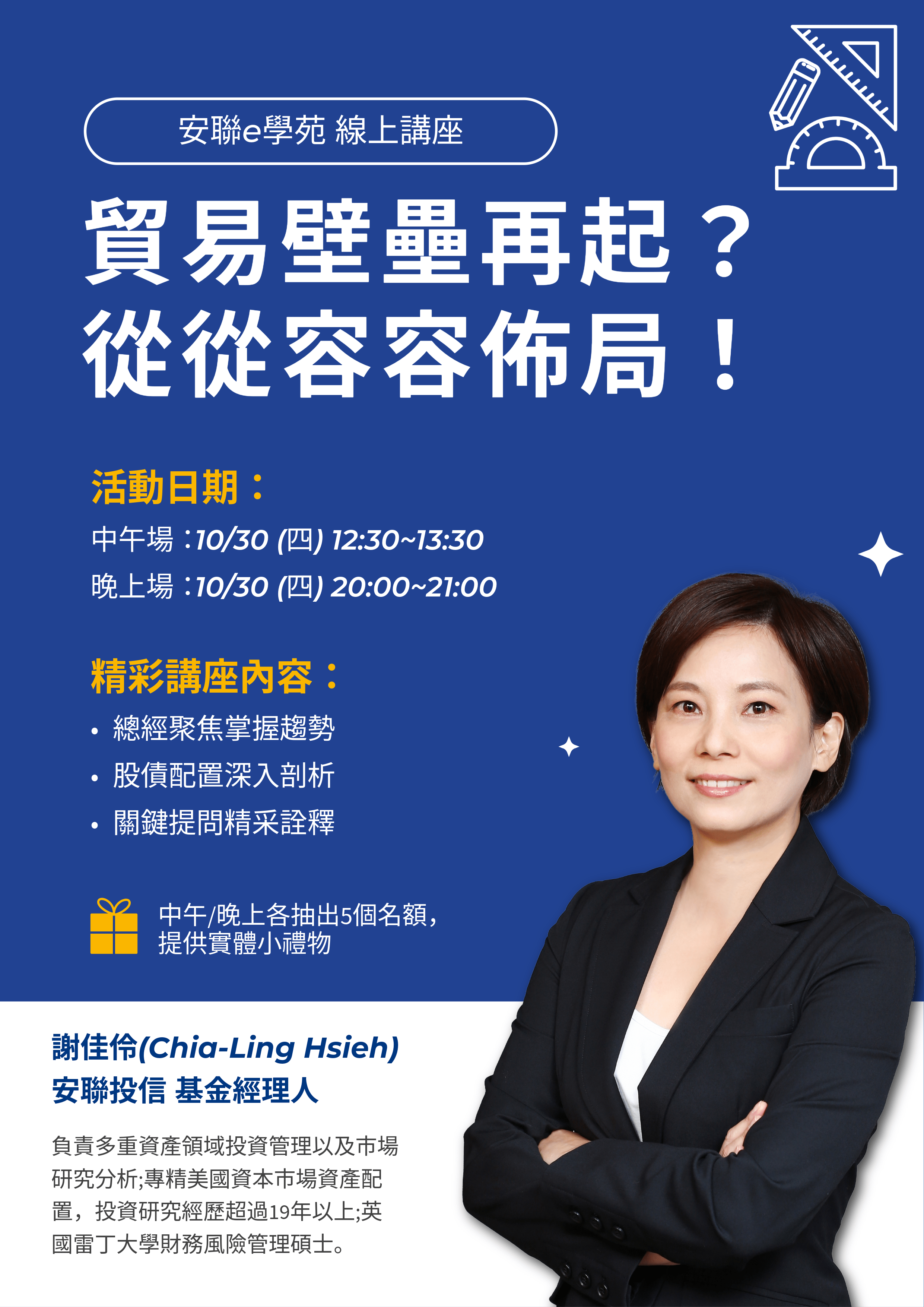 我們誠摯地邀請您,連線參與【安聯e學苑 – 貿易壁壘再起?從從容容佈局!】