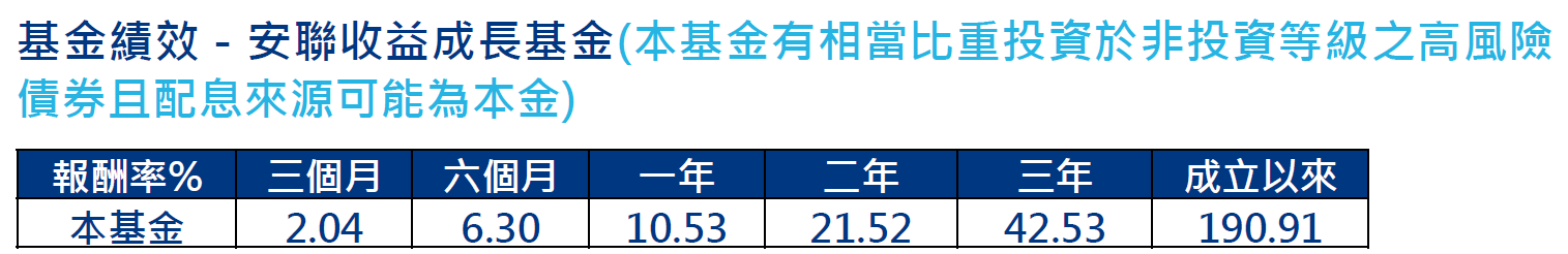 本基金經金管會核准或同意生效,惟不表示絕無風險。基金經理公司以往之經理績效不保證基金之最低投資收益;基金經理公司除盡善良管理人之注意義務外,不負責本基金之盈虧,亦不保證最低之收益,投資人申購前應詳閱基金公開說明書。有關基金應負擔之費用(境外基金含分銷費用)已揭露於基金之公開說明書或投資人須知中,投資人可至公開資訊觀測站或境外基金資訊觀測站中查詢。 由於非投資等級債券之信用評等未達投資等級或未經信用評等,且對利率變動敏感度甚高,故本基金可能會因利率上升、市場流動性下降,或債券發行機構違約不支付本金、利息或破產而蒙受虧損。本基金不適合無法承擔相關風險之投資人。非投資等級債券基金適合欲參與資產具長期增長潛力之投資人。相較於公債與投資級債券,非投資等級債券波動較高,投資人進場布局宜謹慎考量。投資人投資以非投資等級債券為訴求之基金不宜占其投資組合過高之比重。本基金有相當比重投資於符合美國Rule144A規定之私募性質債券,較可能發生流動性不足,財務訊息揭露不完整或因價格不透明導致波動性較大之風險,投資人須留意相關風險。安聯投信總代理之盧森堡系列基金(AGIF)及其發行之境內基金,配息級別之配息可能由基金的收益或本金中支付,或配息前未先扣除應負擔之相關費用(如AMg、BMg、AMf、BMf等級別)。任何涉及由本金支出的部分,可能導致原始投資金額減損。AMf/BMf固定月配類股的配息預期包括來自該級別之資本利得及淨收益,並按每股資產淨值的某一定百分比計算配息,故每期發放的每股配息金額會有變動。因每股資產淨 值每日會有變化,採用的百分比雖一致,但每次實際配息金額可能不同,且百分比率並非保證不調整,固定月配類股於績效為負值之期間,配息通常仍會持續配發且此舉可能會加快投資價值下跌的速度,又因配息採一定百分比計算而非與收益或資本利得連動,故有相對高的可能性會侵蝕本金,若配息金額可能會大於此級別的已實現資本利得及其他淨收益,將導致侵蝕本金。如因配息類股規模大幅減少至一定程度時,境外基金之董事會得依其評估主動將該類股併入同基金之其它配息類股。AMg7月收總收益類股、BMg7/BMg9月收總收益類股及AMgi月收總收益類股進行配息前未先扣除應負擔之相關費用,雖可產生更多可分配金額,但配息涉及由本金支付之機會可能大於AM穩定月收類股、BM/BM9穩定月收類股及AM5穩定月收類股。AMg7月收總收益類股、BMg7/BMg9月收總收益類股及AMgi月收總收益類股如因由本金支出過多配息致類股規模減少至一定程度時,境外基金之董事會得依其評估主動將該類股併入同基金之其它配息類股。AMg2穩定月收息類股進行配息前未先扣除應負擔之相關費用,配息主要來自投資收益,配息涉及本金之機會相對最小。AM5的配息來源為投資組合預期收益率搭配少數預期資本利得。AMgi目標金額配息,配息不含匯率利差,避險成本與費用已反映於淨值中。以穩定配息為目標的配息股份會定期檢視且可能調整預定配息金額。預定配息金額如有變動將不另行通知股東。基金配息不代表基金實際報酬,且過去配息不代表未來配息;基金淨值可能因市場因素而上下波動。本公司於公司網站揭露各配息型基金近12個月內由本金支付配息之相關資料供查詢,投資人於申購時應謹慎考量。有關境外基金配息金額之決定,係由境外基金機構根據已取得之資本利得及股息收益狀況,並考量基金經理人對於未來市場看法,評估預定之目標配息金額。若本基金因市場因素造成資本利得及股息收益狀況不佳,將可能調降目標配息金額。 基金投資地區包含中國及香港,可能因產業循環或非經濟因素導致價格劇烈波動,以及市場機制不如已開發市場健全,產生流動性不足風險,而使資產價值受不同程度之影響,投資前請詳閱基金公開說明書有關投資風險之說明。在國內募集及銷售之境外基金,投資大陸地區之有價證券以掛牌上市有價證券及銀行間債券市場為限,且投資前述有價證券總金額不得超過該境外基金淨資產價值之百分之二十。本基金可投資於轉換公司債,由於轉換公司債同時兼具債券與股票之特性,因此除利率風險、流動性風險及信用風險外,還可能因標的股票價格波動而造成該轉換公司債之價格波動,此外,非投資等級或未經信用評等之轉換公司債所承受之信用風險相對較高。本文提及之經濟走勢預測不必然代表本基金之績效,本基金投資風險請詳閱基金公開說明書。以上僅為歷史資料模擬投資組合之結果,不代表本投資組合之實際報酬率及未來績效保證,不同時間進行模擬操作,其結果亦可能不同。若為BT累積/BT9累積/BM穩定月收/BM9穩定月收/BMg穩定月收總收益/BMg7月收總收益/BMg9月收總收益/BMf固定月配/BMf2固定月配/BMf9固定月配類股,該類股申購手續費雖可遞延收取,惟需支付最高為每年基金淨資產價值1%之分銷費,該分銷費已包含於單一行政管理費中(分銷費可能造成該級別實際負擔費用增加,此費用已反映於每日基金淨值中)。安聯環球投資與Voya Investment Management (Voya IM) 已成為長期策略夥伴,因此自2022 年7 月25 日起,本投資團隊已轉換至Voya IM ,這並沒有實質性地改變團隊的組成、投資理念和投資過程。基金管理機構: Allianz Global Investors GmbH、委任投資經理: Voya Investment Manageme