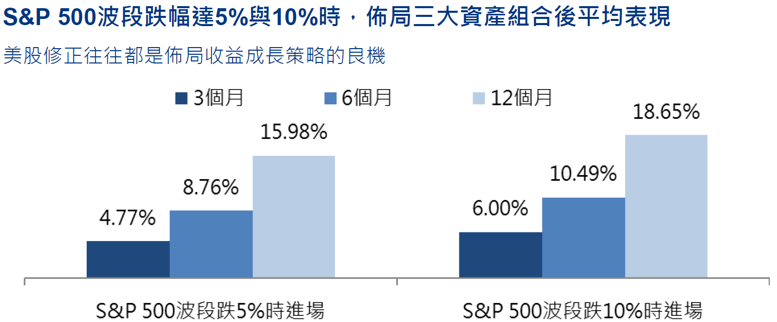 - 根據統計,美股修正5-10%,亦是佈局收益成長策略的長線良機!