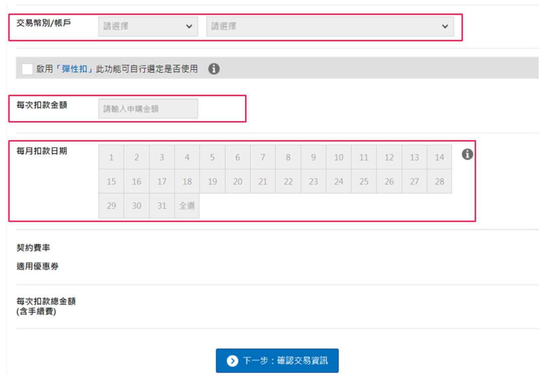 4. 選擇扣款帳戶、輸入申購金額與每月扣款日期