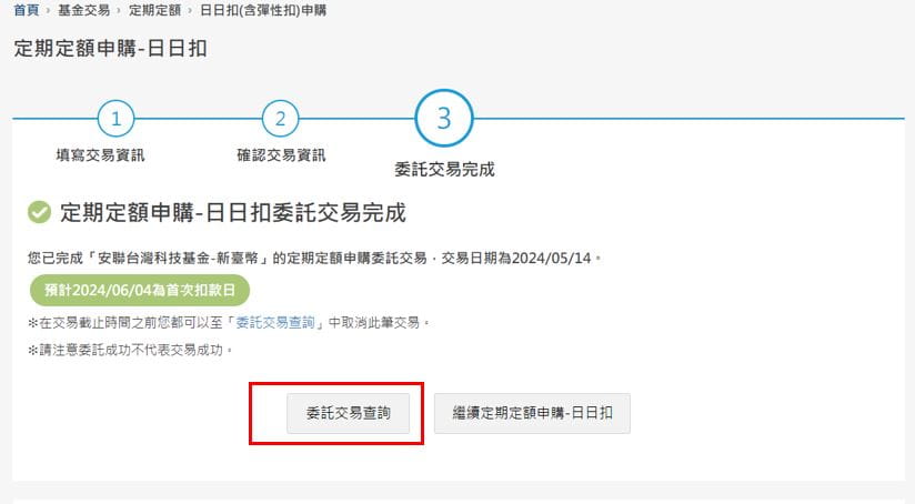7. 定期定額申購-日日扣交易完成