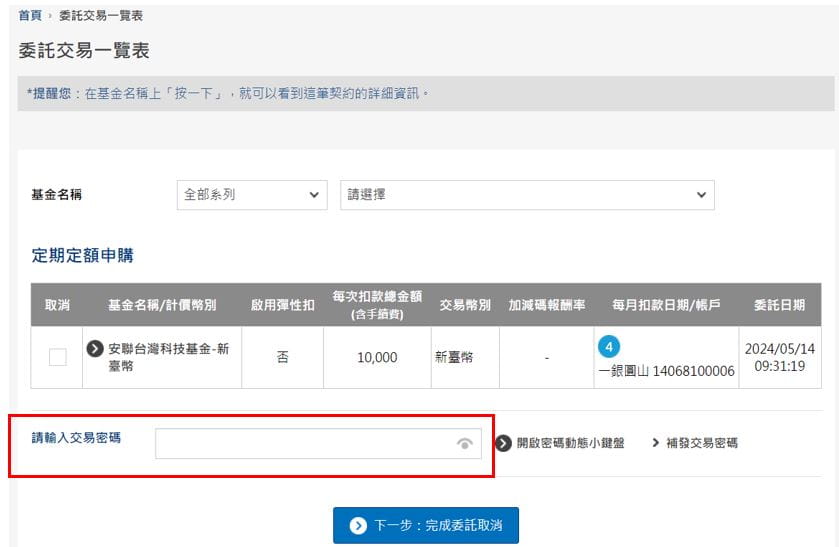 (2) 於下方輸入您的交易密碼