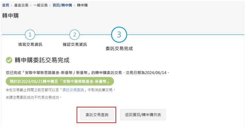 6. 轉申購交易完成